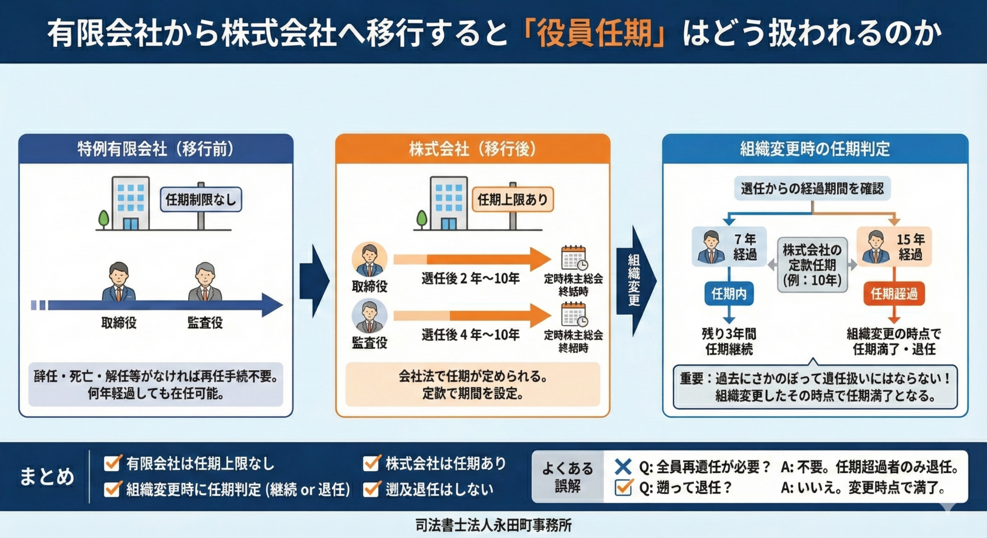 有限会社から株式会社へ移行すると「役員任期」はどう扱われるのか