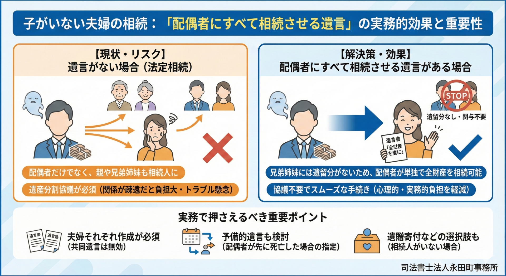子がいない夫婦における 配偶者にすべて相続させる遺言の実務的な意味