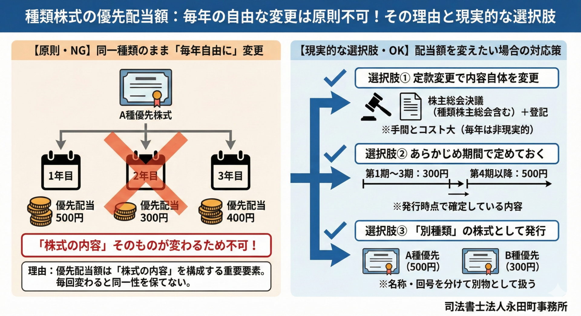 理由は単純で、優先配当額は「種類株式の内容そのもの」だからです。