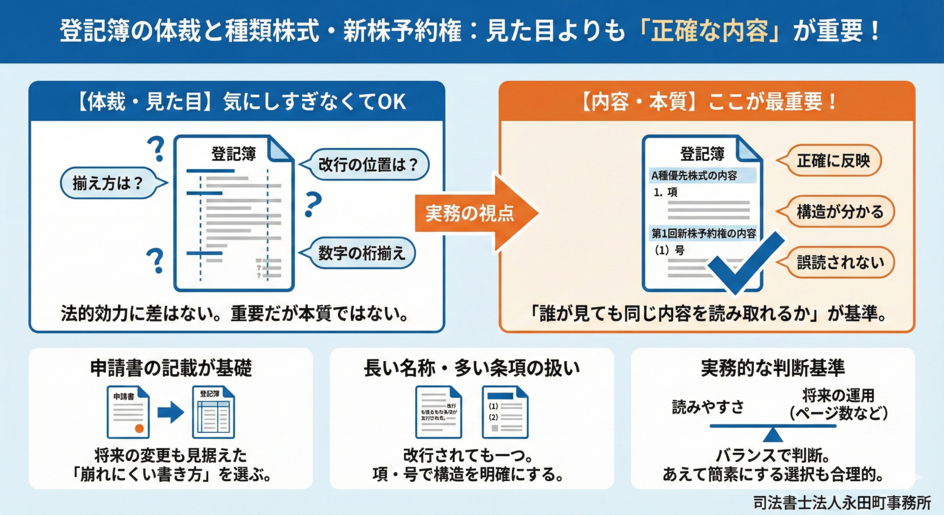 登記簿の体裁と記載される種類株式・新株予約権の内容