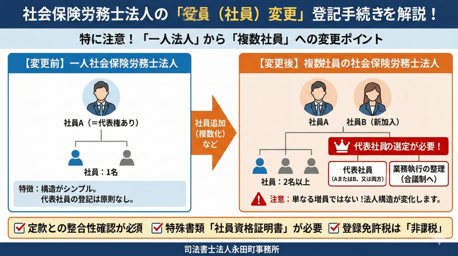本稿では、「一人社会保険労務士法人」における社員変更登記の実務を、専門家の視点から整理します。